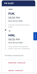 6/26のフィリピン航空 PR425/426便がフライトキャンセルになったとの情報がフィリピン航空のホームページ上で発表されました。